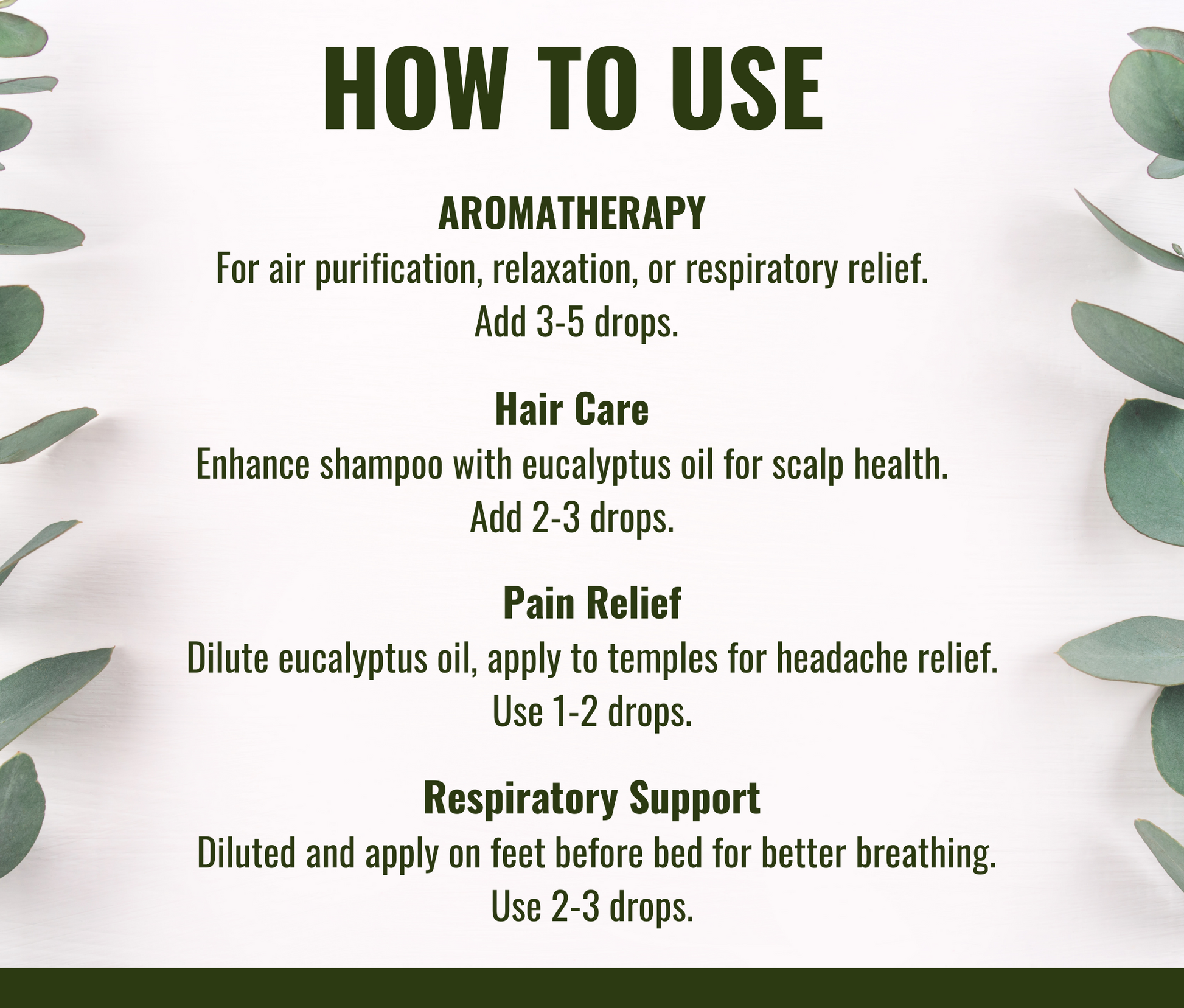 Eucalyptus Essential Oil for Cold Relief, Spa & Diffuser