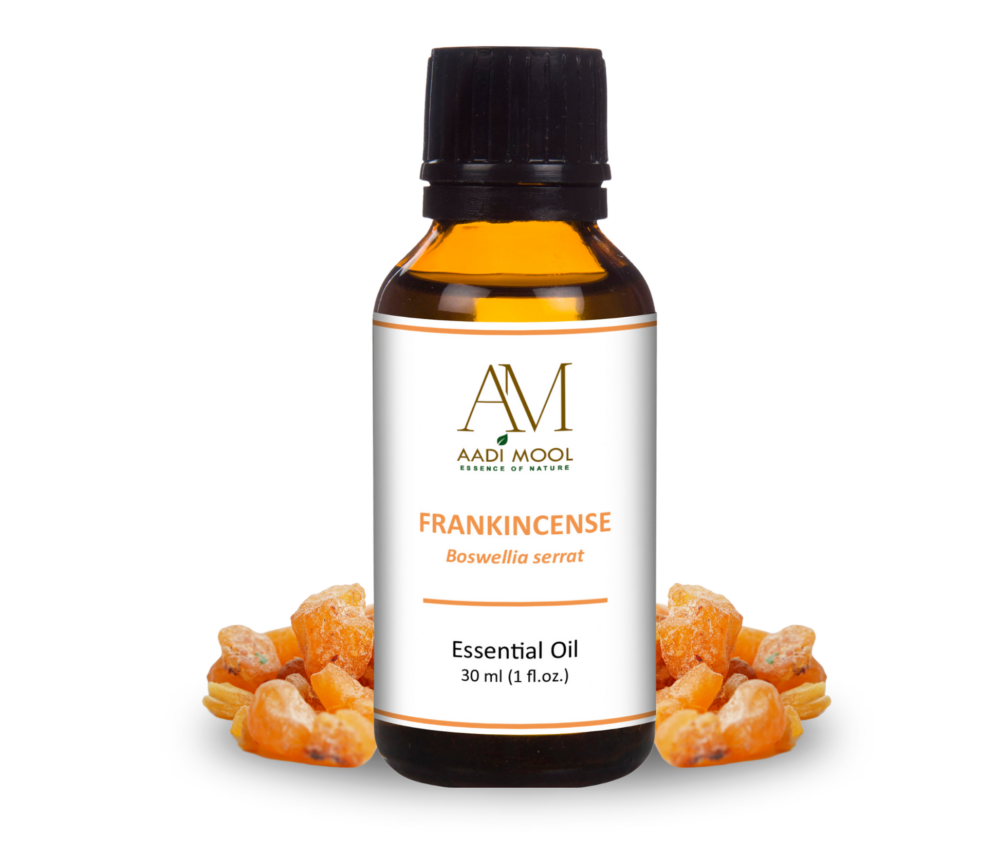 Aadi Mool Frankincense Essential Oil is a pure, aromatic oil ideal for skin, hair, and aromatherapy. Extracted from Boswellia trees, it offers a woody, slightly citrus scent and is suitable for all skin types.