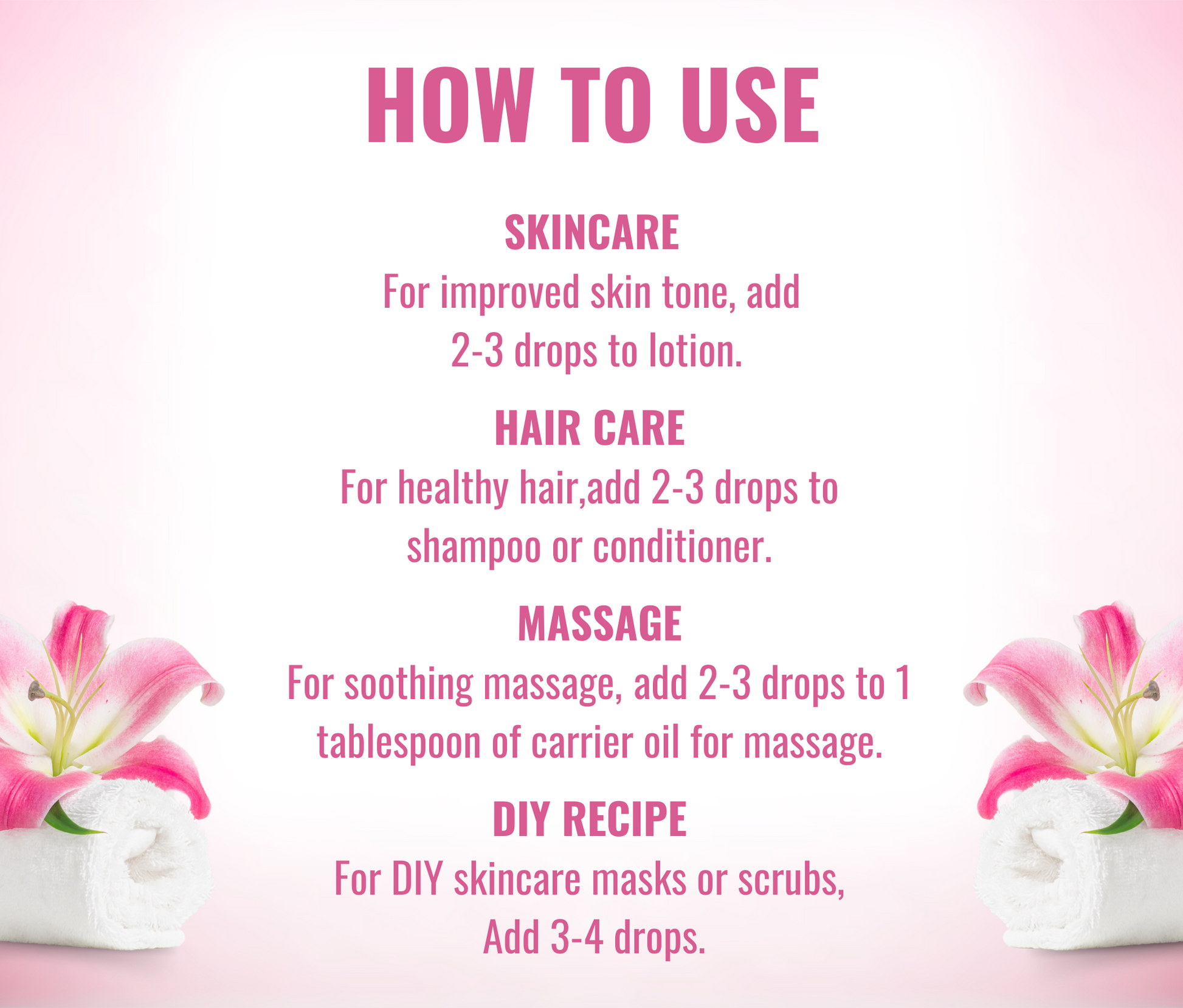 ✔Massage Oil : Can be mixed with carrier oils for a soothing massage experience, leaving the skin feeling soft.