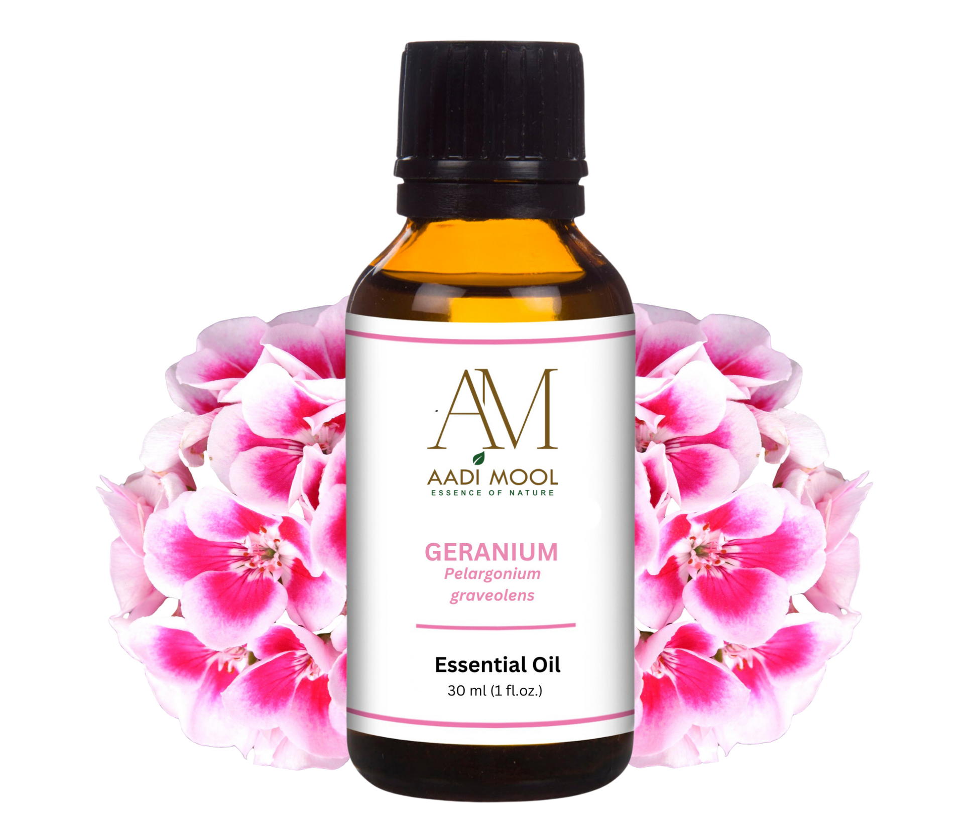 Aadi Mool Geranium Essential Oil is a pure, aromatic oil extracted from geranium flowers. It offers a floral scent, ideal for diffusers, massage, and skincare routines. This versatile oil blends well with other essential oils, providing a refreshing and uplifting atmosphere for your home and personal care needs.