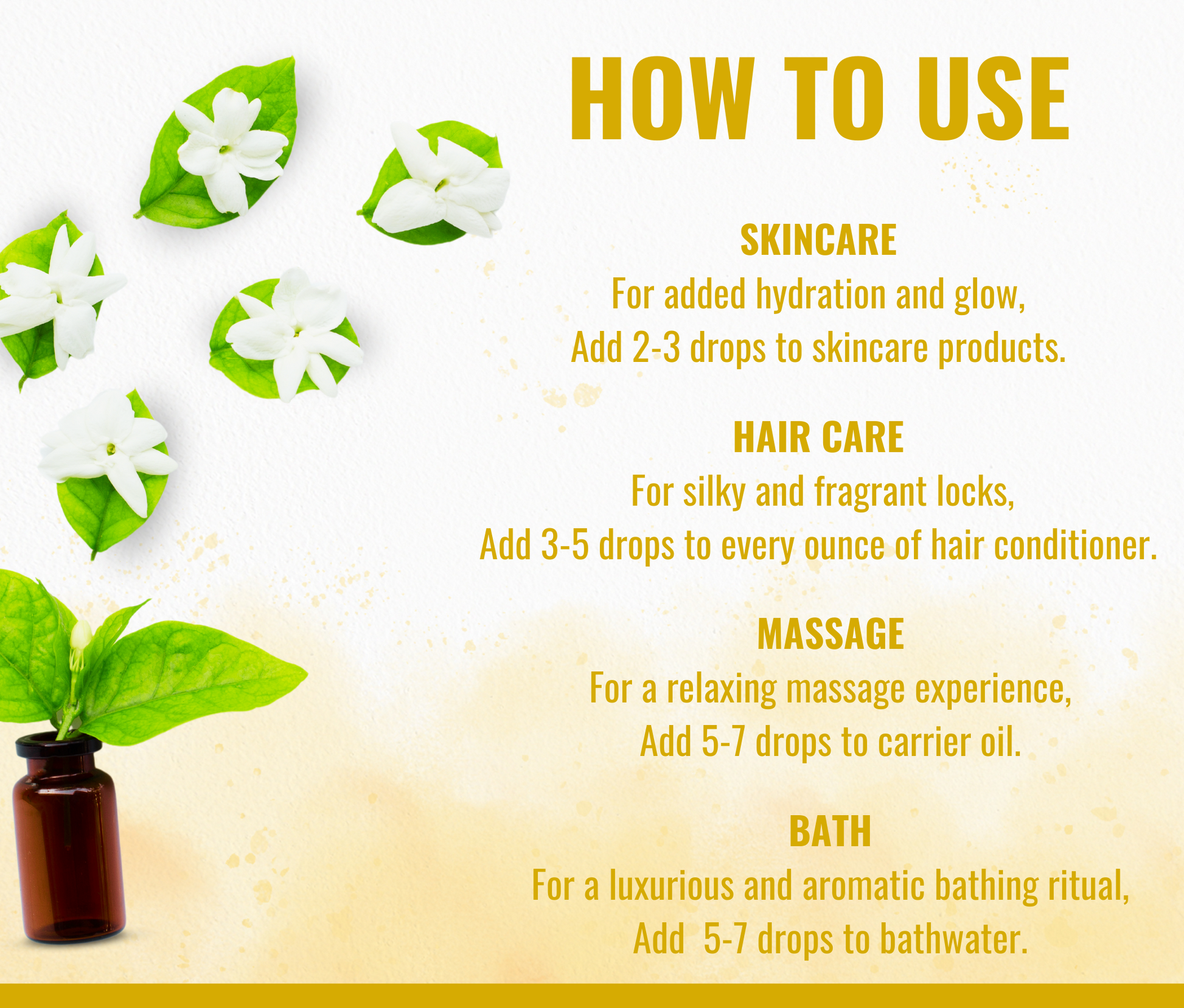 Aadi Mool Jasmine Essential Oil offers a luxurious floral aroma, ideal for skin and hair care routines. Its hydrating properties help maintain moisture and shine, leaving you feeling refreshed and uplifted throughout the day.